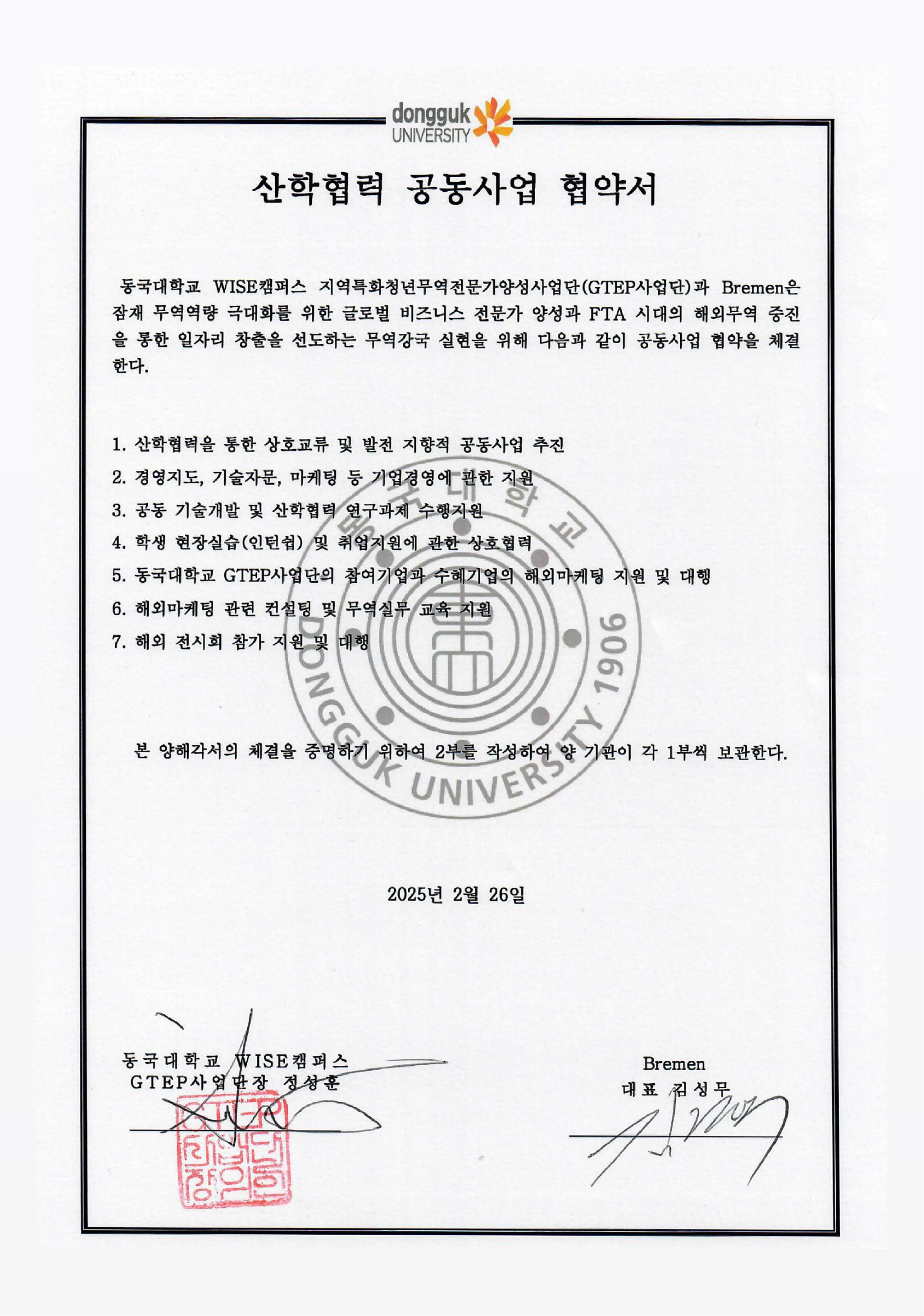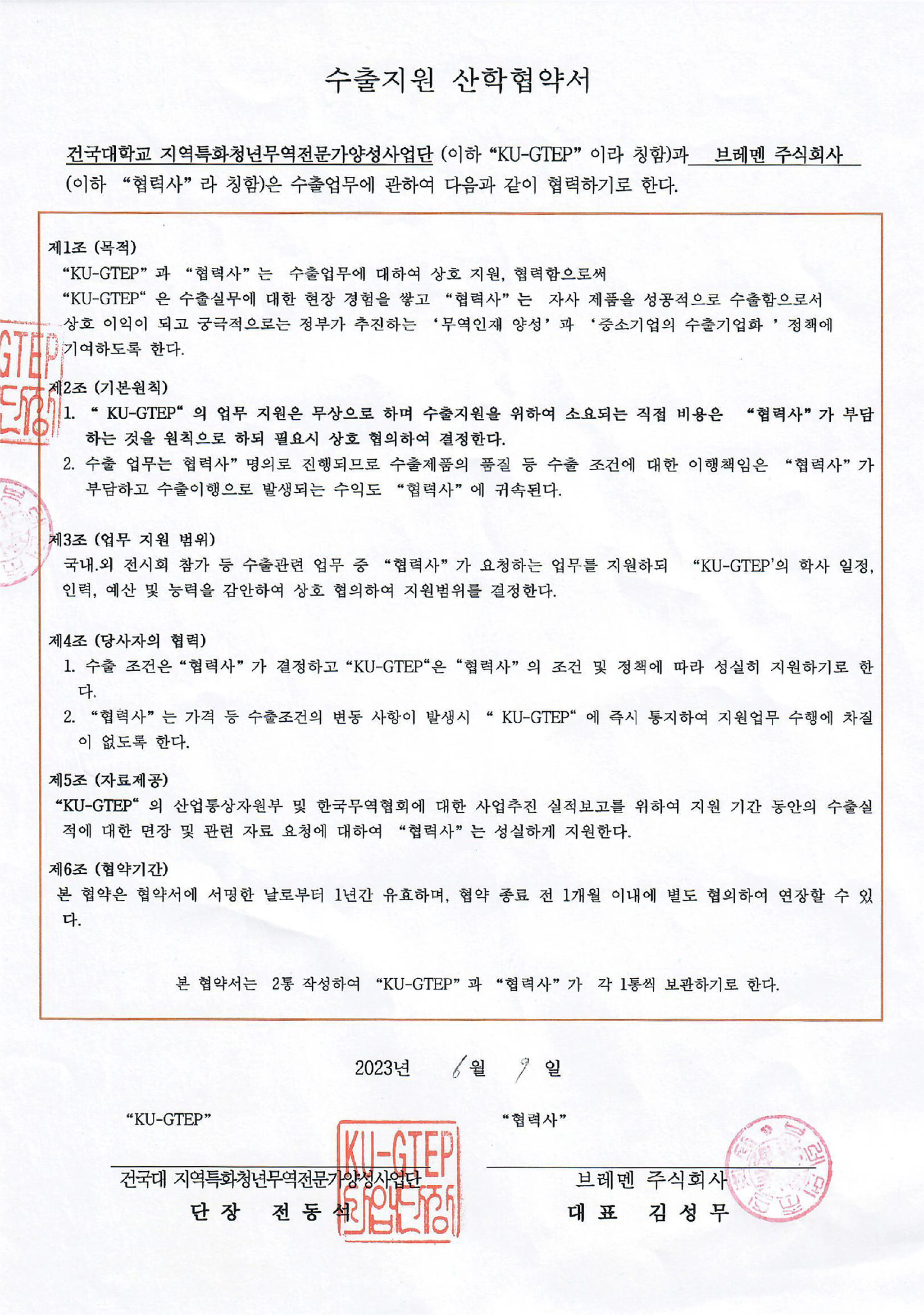 (Established Bremen Co., Ltd. as a corporation for manufacturing and import/export)Selected for the Initial Startup Package by the Korean government