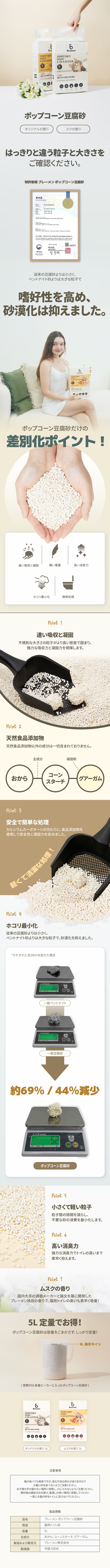 高温膨張工法でホコリを最小化し、凝固力を強化した世界初のポップコーン型豆腐砂