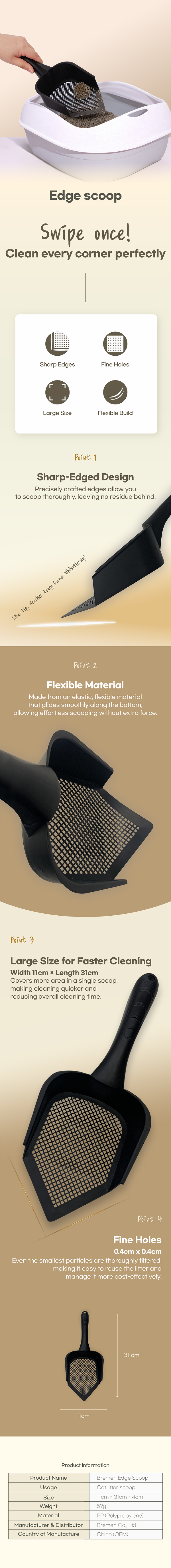 High-efficiency litter scoop with pointed edges